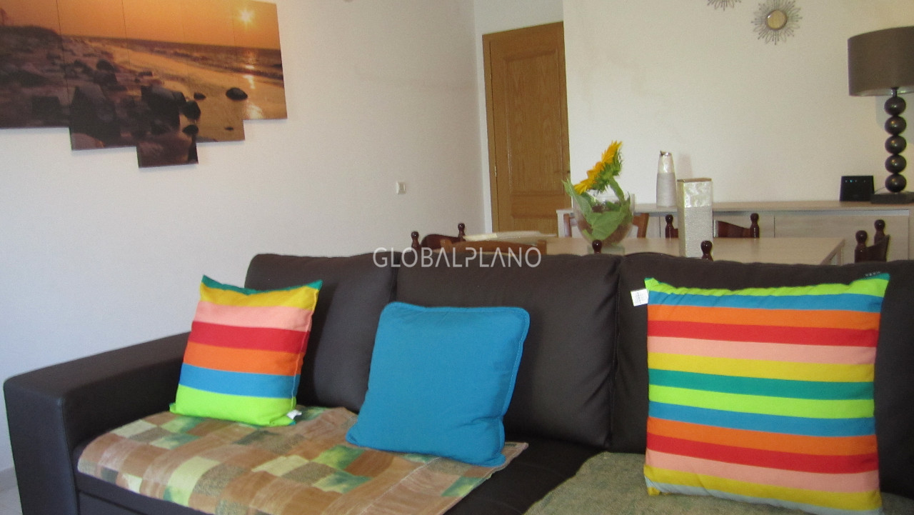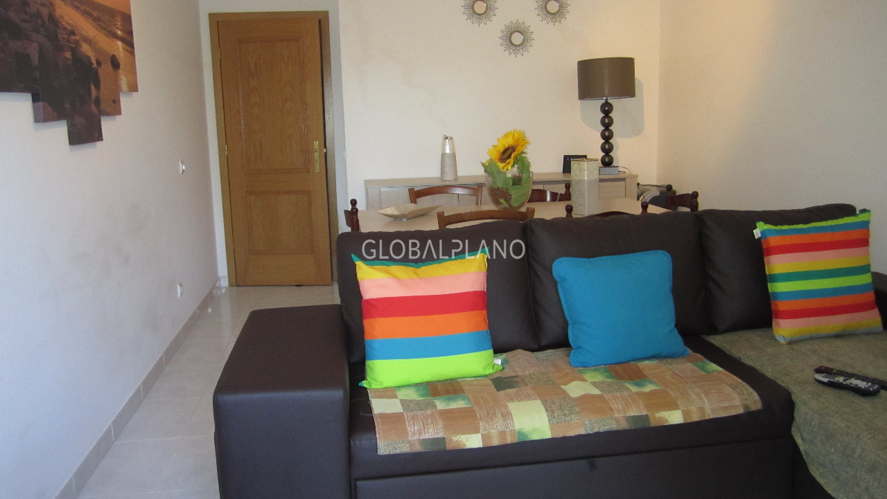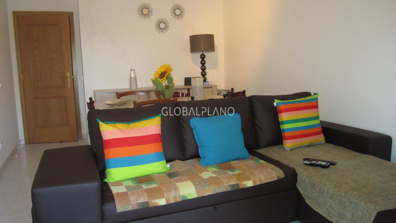 Excellent apartment in quiet area of Albufeira, consists of an entrance Hall, semi-equipped kitchen, living/dining room, 1 room, 1 bathroom with bath tub, balcony shared between bedroom and living room. Private parking space and it's located in a quiet residential area, close to the Centre of Albufeira and the beaches with garden area and communal swimming pool.