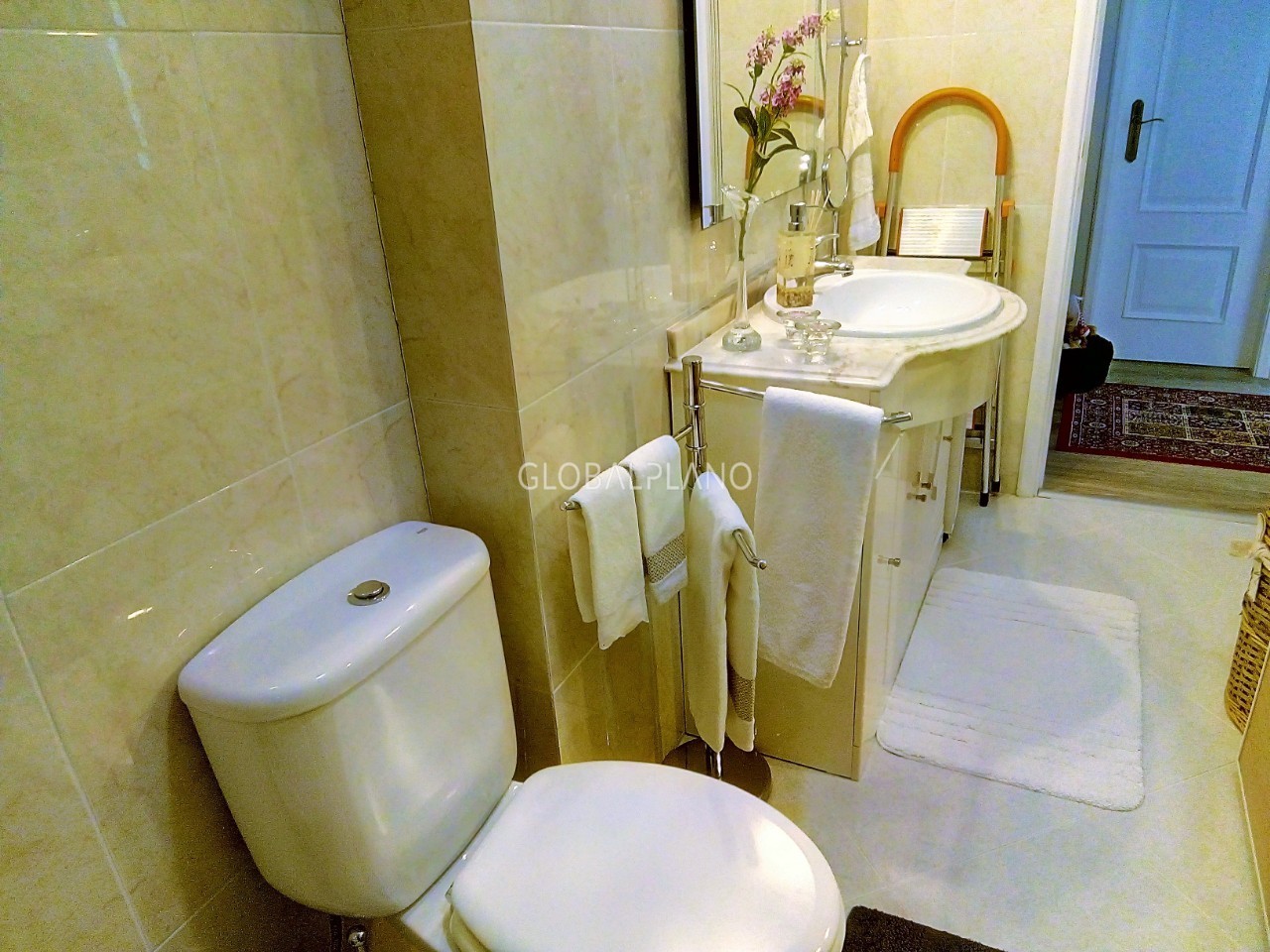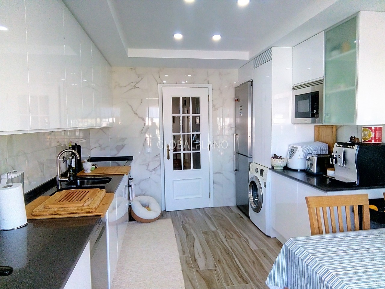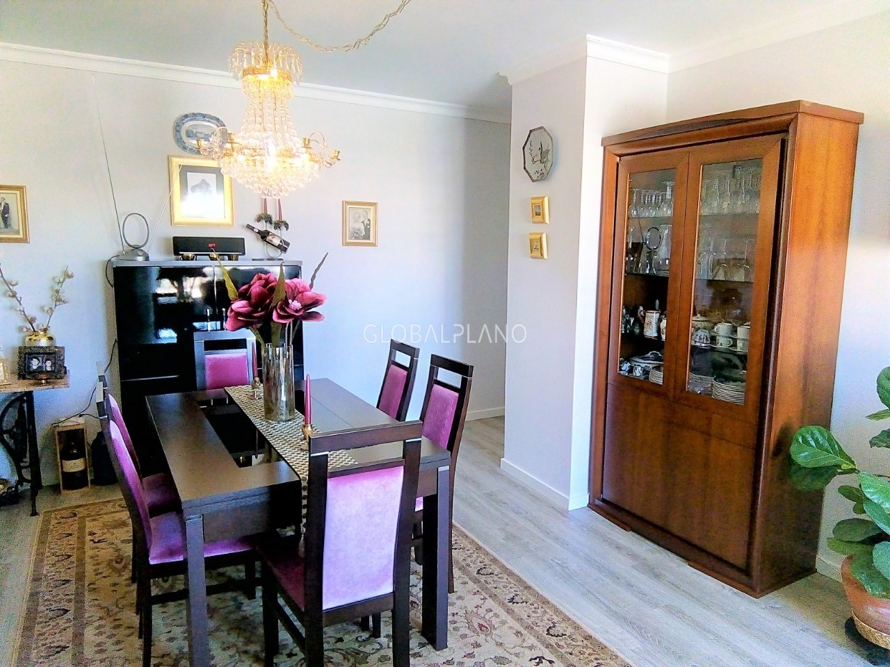 O seu interior é composto por hall de entrada com roupeiro e despensa, sala de estar, varandas em todo o apartamento cozinha remodelada e equipada, três casas de banho ( uma comum outra é privada), quatros quartos ( sendo um deles suite), todos possuem roupeiros e aquecimento central.