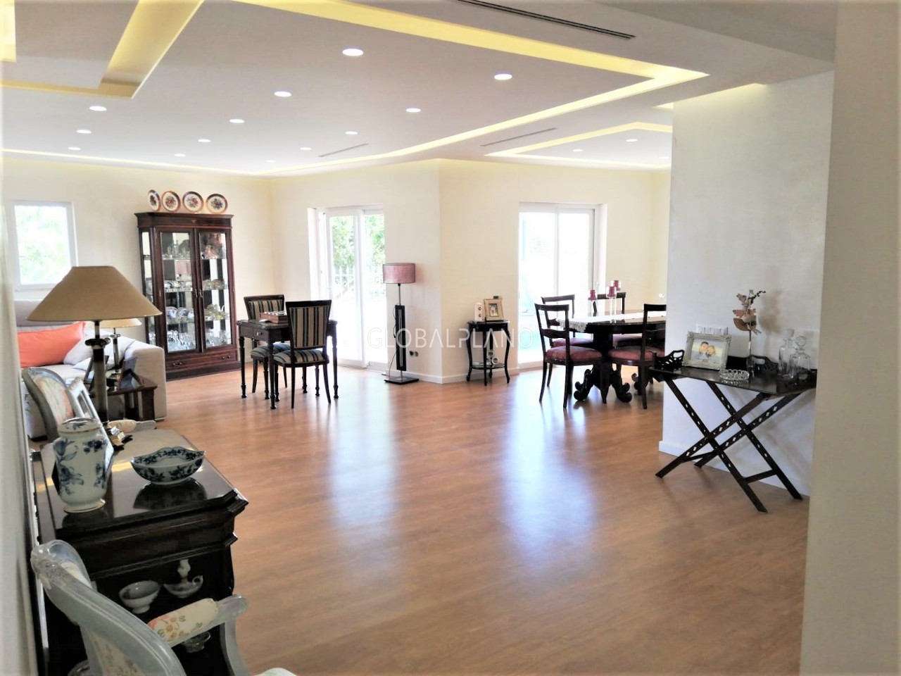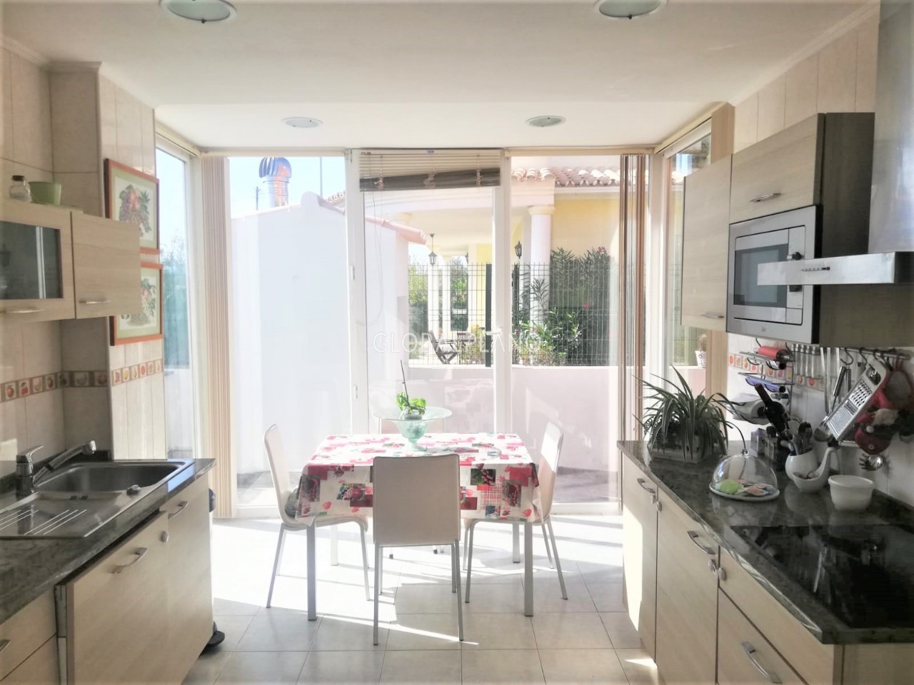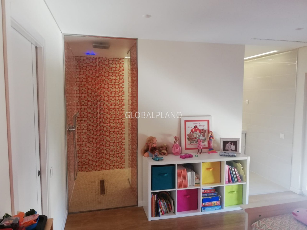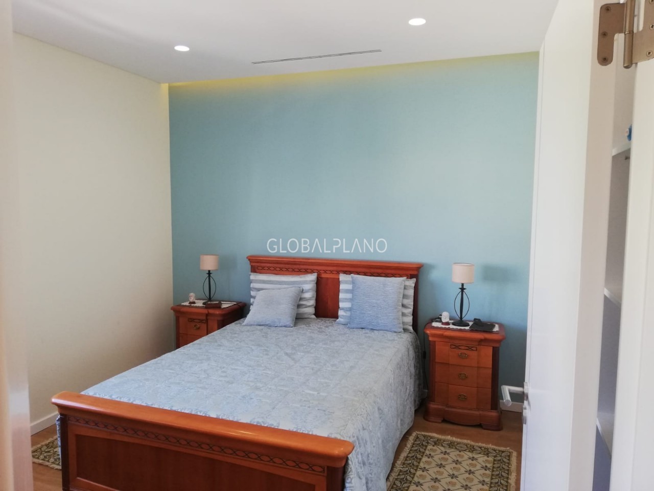 Constituído por uma sala com acesso à piscina, cozinha e 5 quartos sendo que 3 deles ensuite, 3 casas de banho, cave com garagem, cozinha. No exterior consiste em terraço com vista mar e serra, piscina com zona para barbecue.