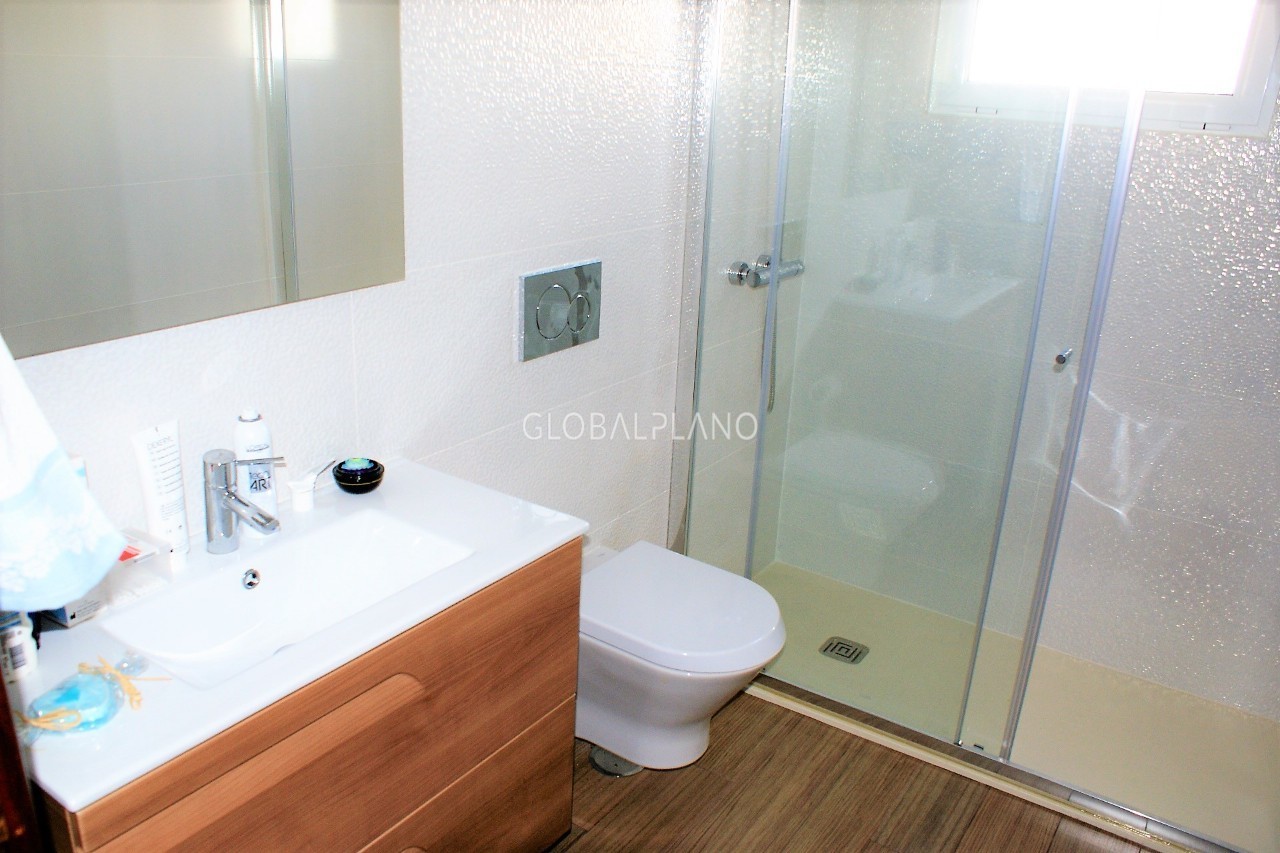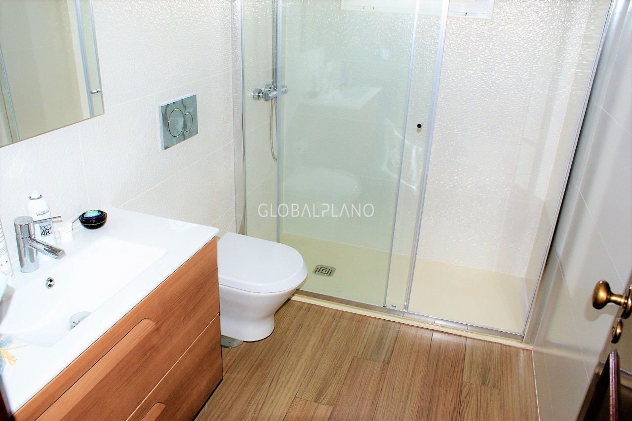 O seu interior é composto por hall de entrada, sala de estar, duas cozinhas, quatro casas de banho, quatro quartos com roupeiros embutidos, possui ainda jacuzzi e garagem.